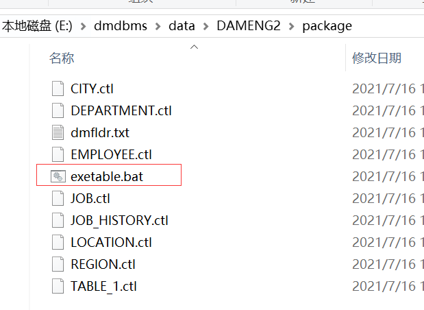 call E:\dmdbms\data\DAMENG2\package\exetable.bat