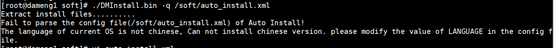 注意:虽然我DMInstall.bin和auto_install.xml在同一目录下,但是安装的时候还是需要指定auto_install.xml的全路径/soft/auto_install.xml,不然会报错。