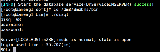 [INFO] Start the database service(DmServiceDMSERVER) success!
