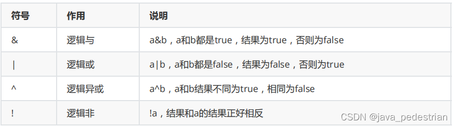 逻辑运算符,是用来连接两个布尔类型结果的运算符(!除外),运算结果一定是boolean值true或者false。逻辑运算符作用: 用于整合多个比较表达式的条件