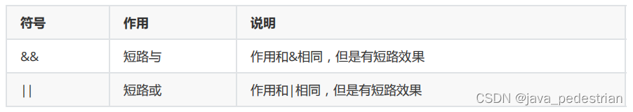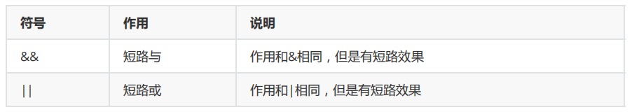 在逻辑与运算中,只要有一个表达式的值为false,那么结果就可以判定为false了,没有必要将所有表达式的值 都计算出来,短路与操作就有这样的效果,可以提高效率。同理在逻辑或运算中,一旦发现值为true,右边的表达式将不再参与运算。