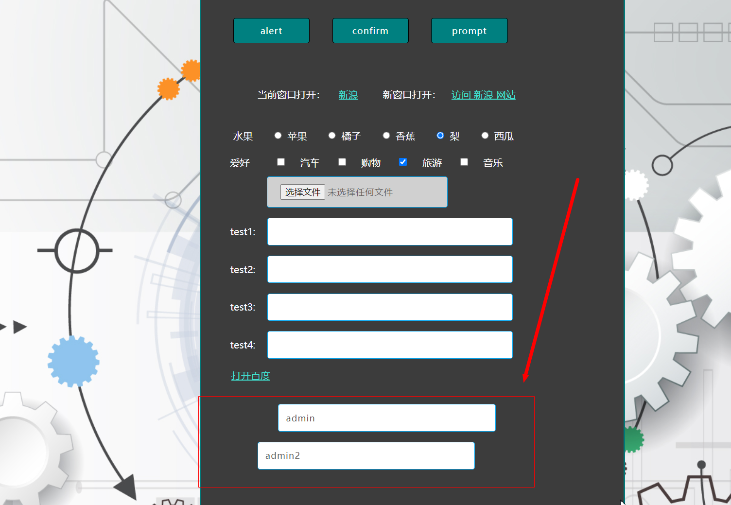 2)name定位:document.getElementByName()