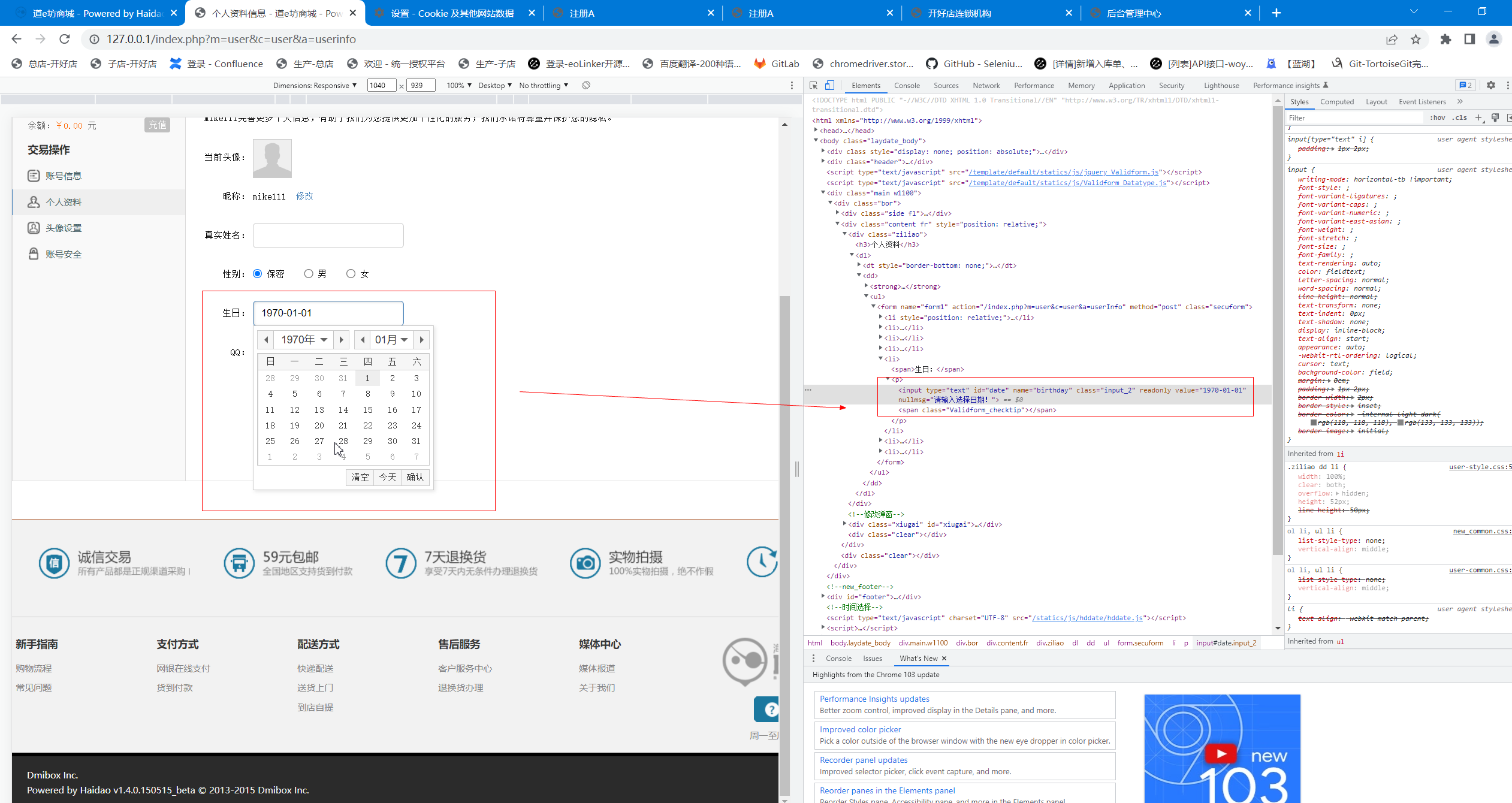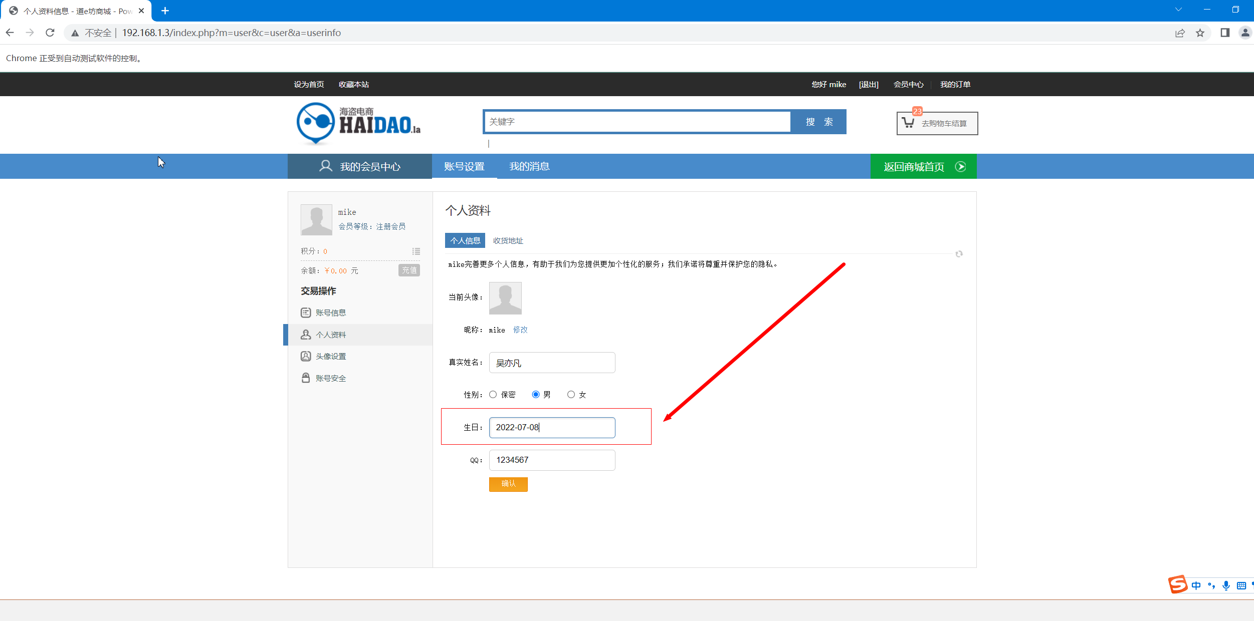 #在生日输入框中 输入新的生日
