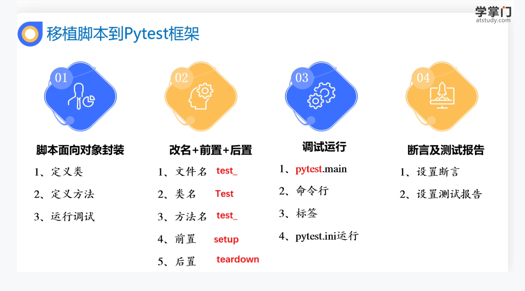 - 销毁的操作方法: def teardown(self): 方法来实现。-----teardown要小写