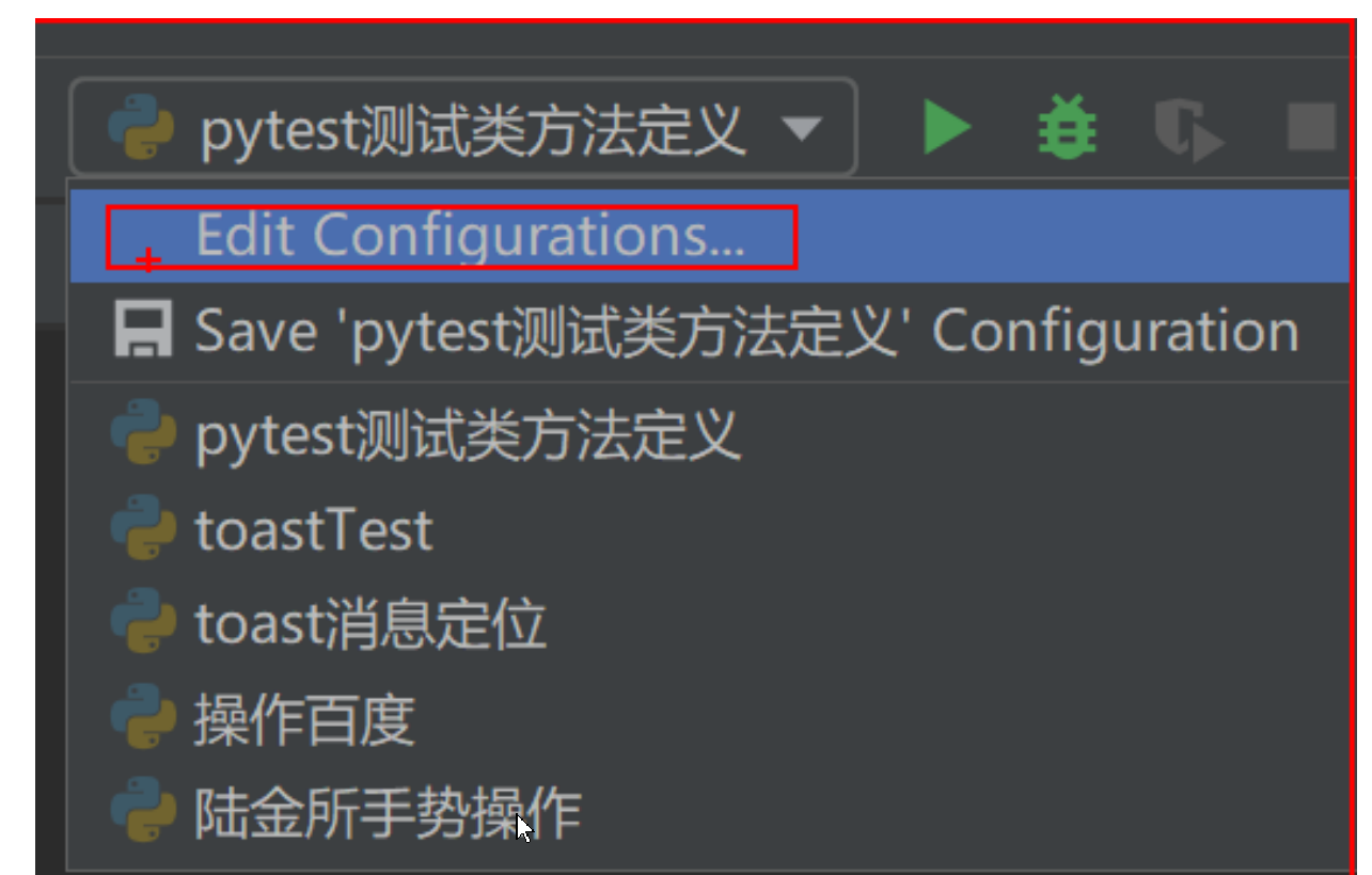 - 在pycharm中右击方法名或者类名可以直接执行对应测试类或者测试方法