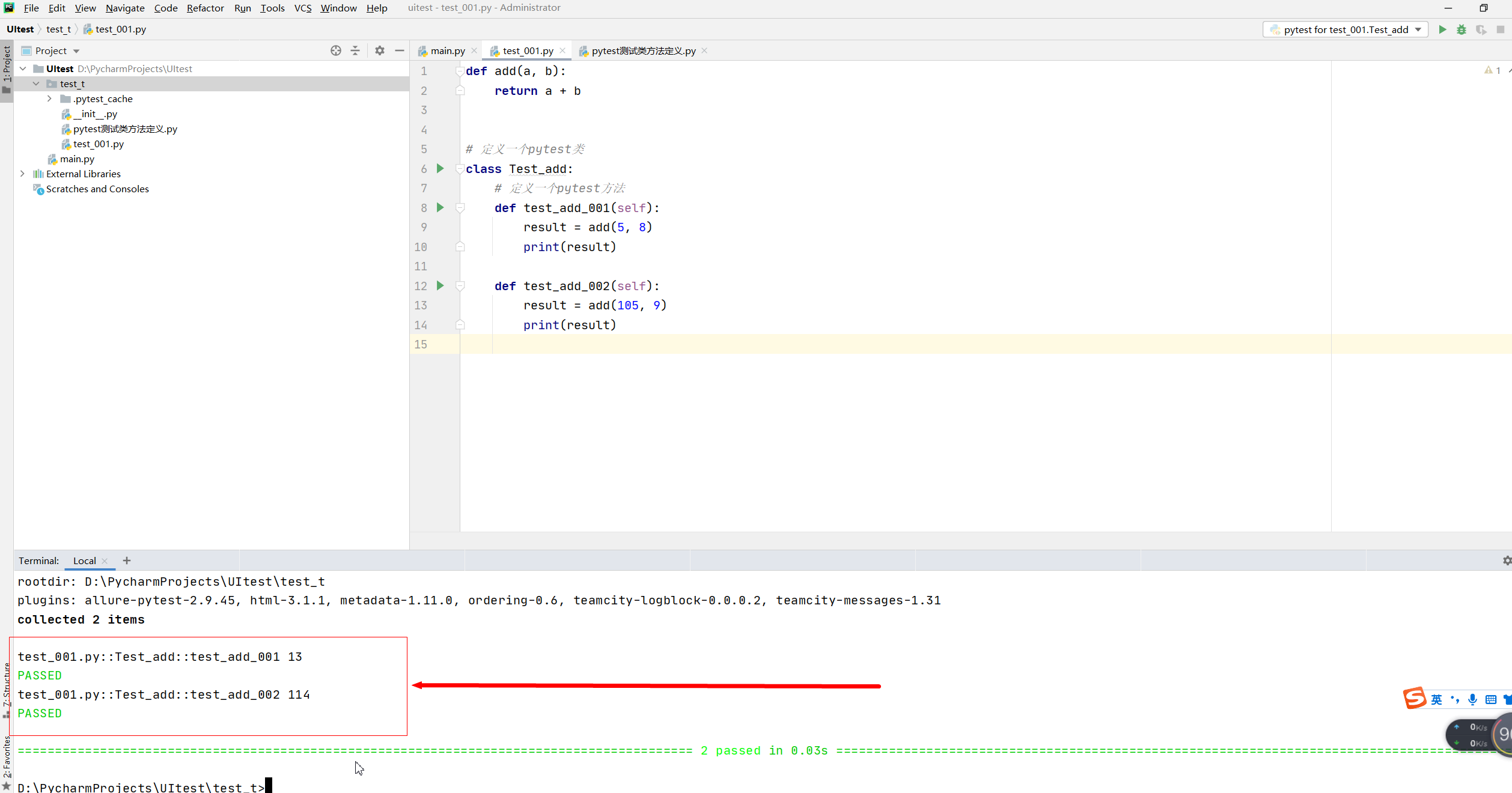 --D:\PycharmProjects\UItest\test_t>pytest -s -v test_001.py