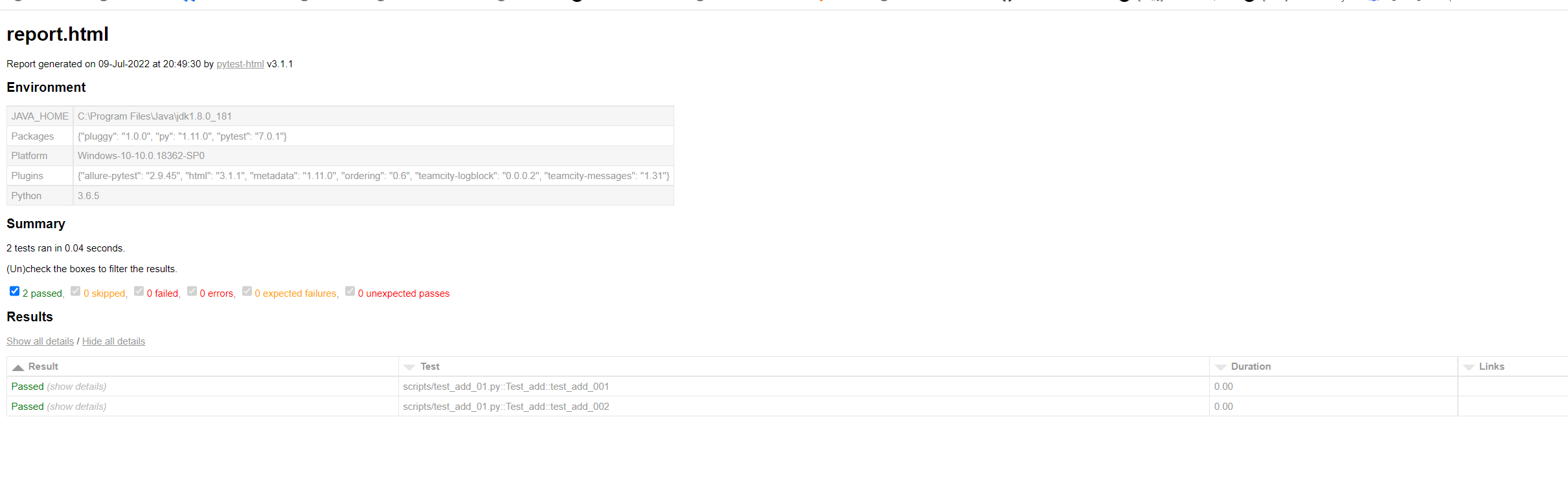 - --alluredir 后面的 report 为测试结果文件输出的目录名