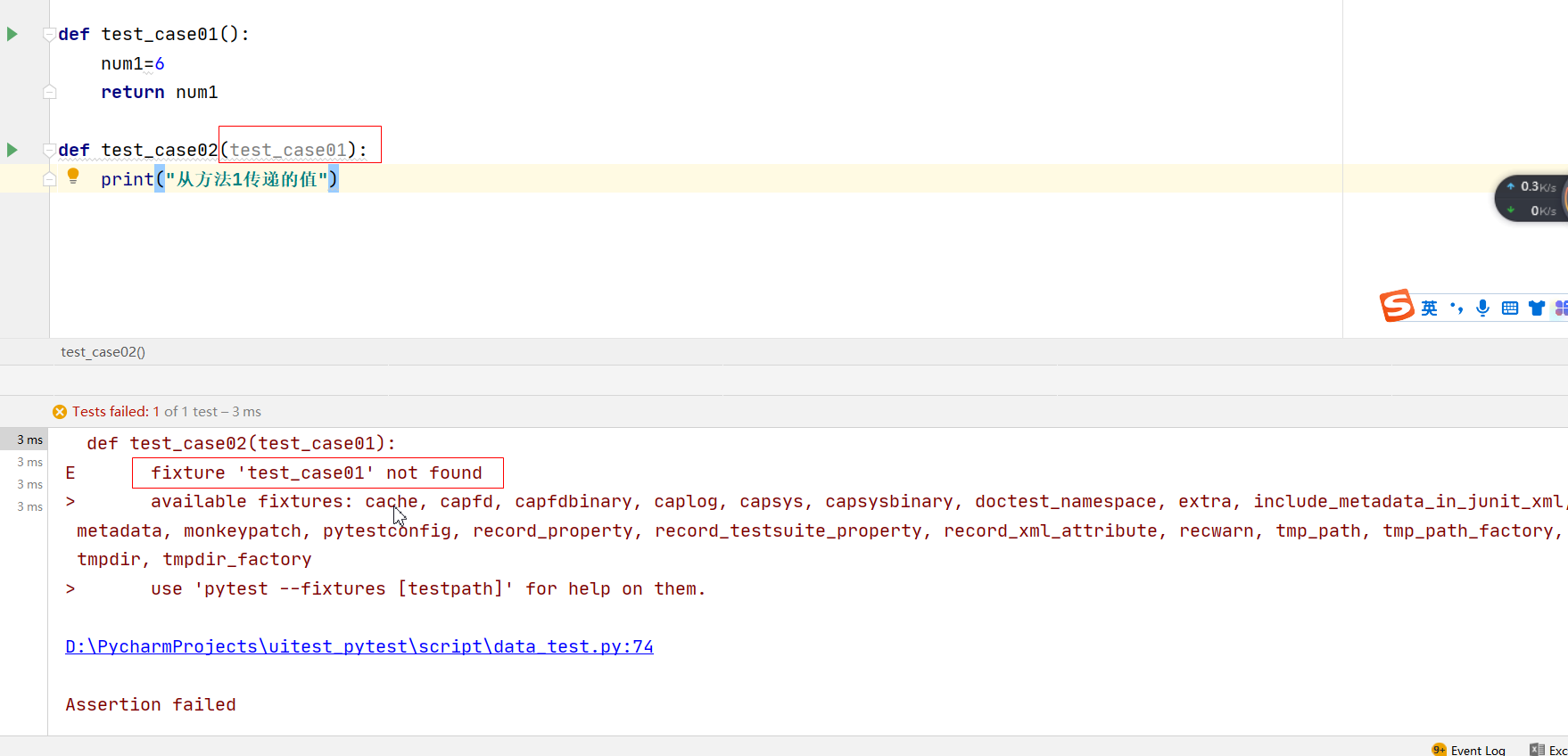 fixture的方法必须写在测试类当中,不能写在测试类外面。