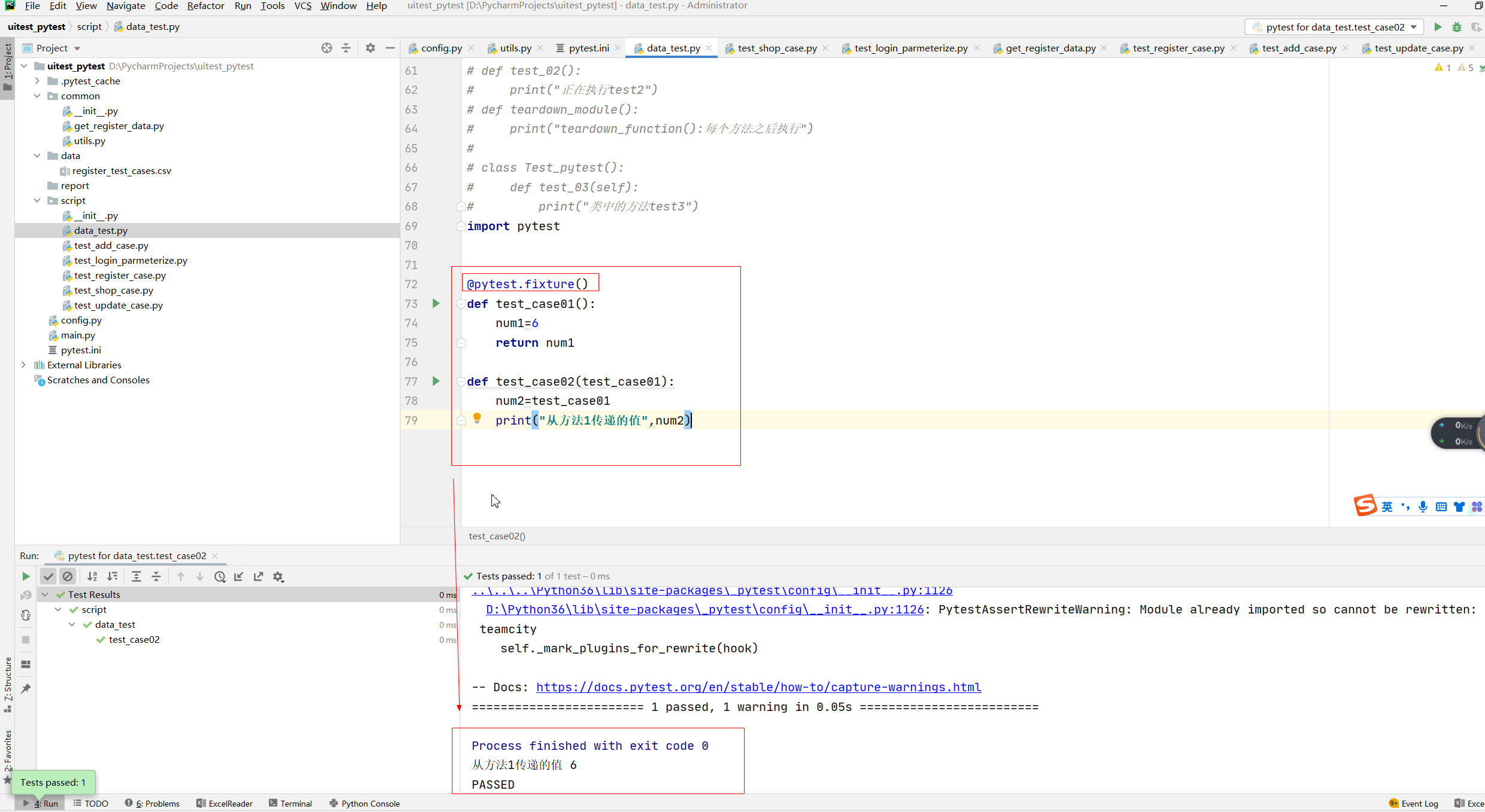 - 如果已经设置fixture------引入该文件,用fixture方法进行参数传递