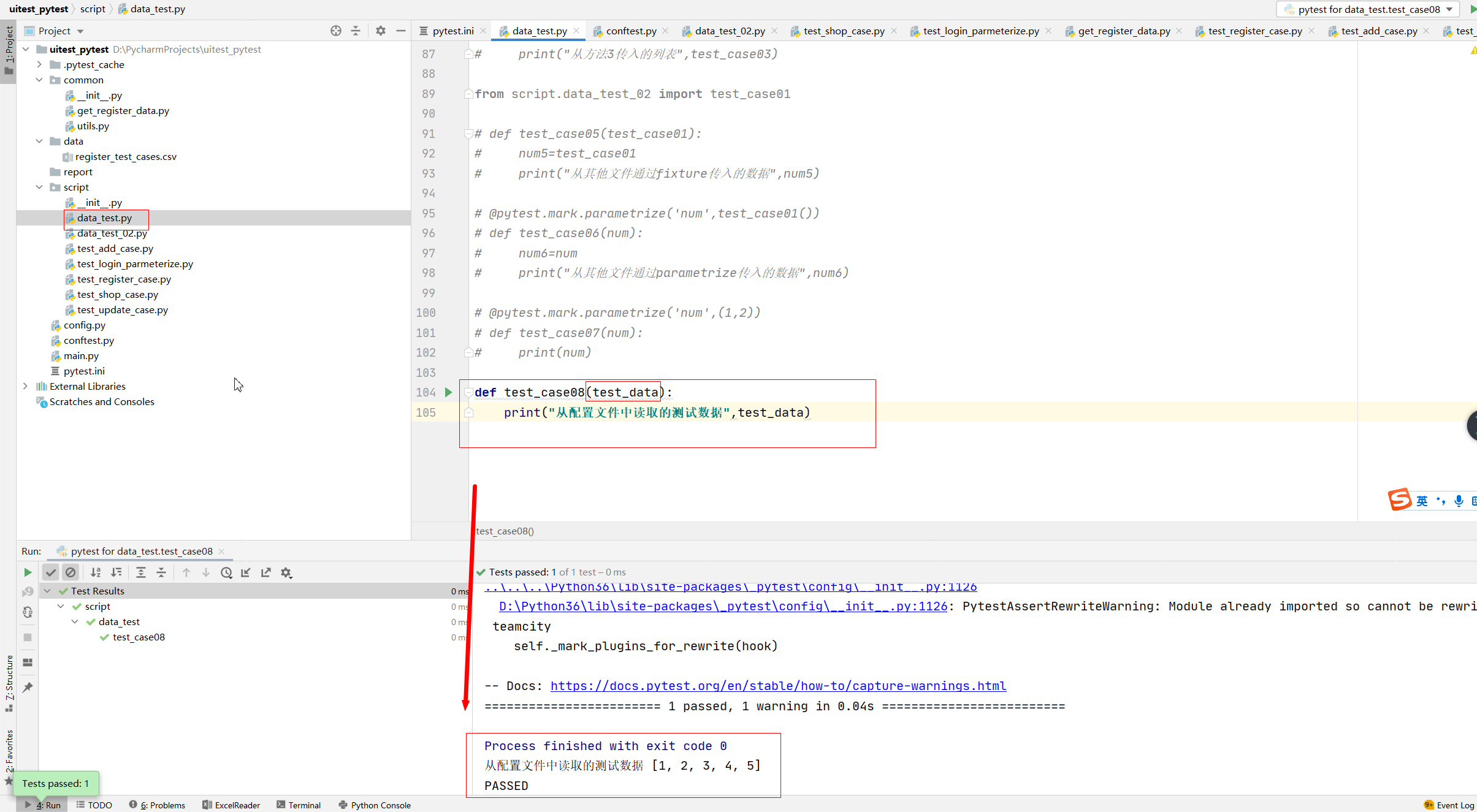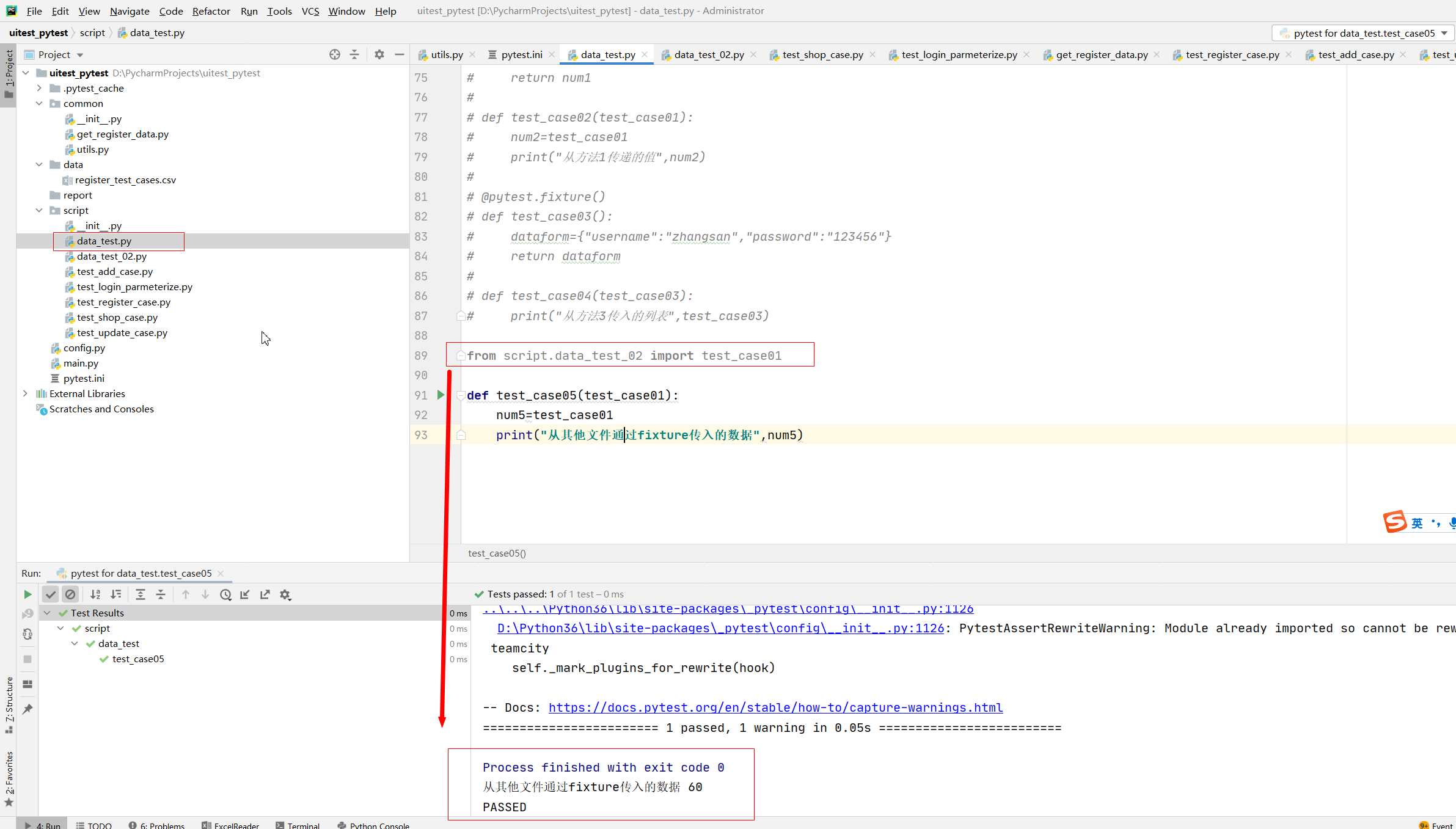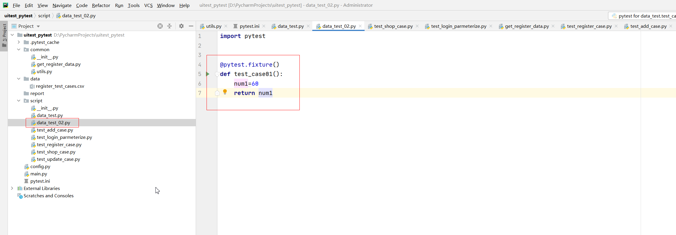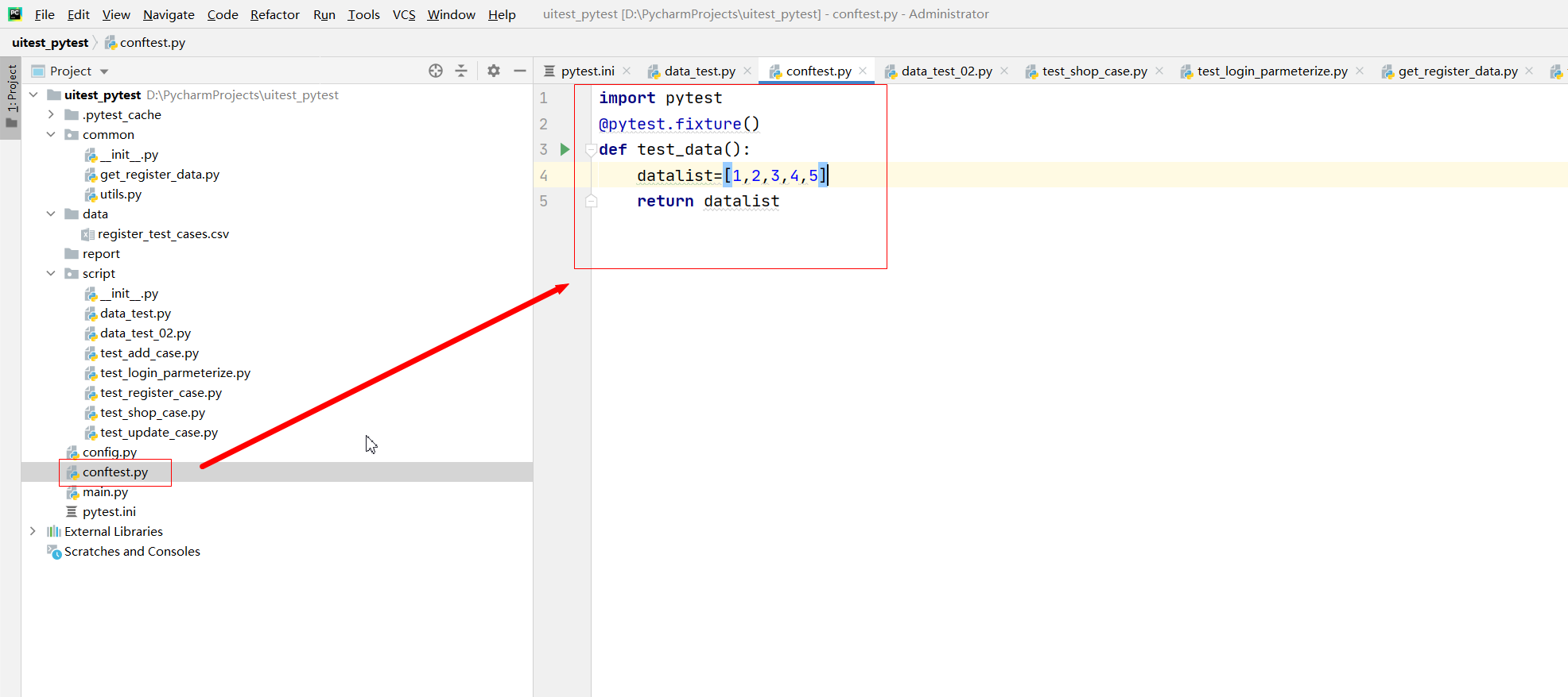 3、大批量的脚本需要使用相同的测试数据----数据放在conftest.py中----所有当前项目的脚本都可以直接使用,不需要引入文件