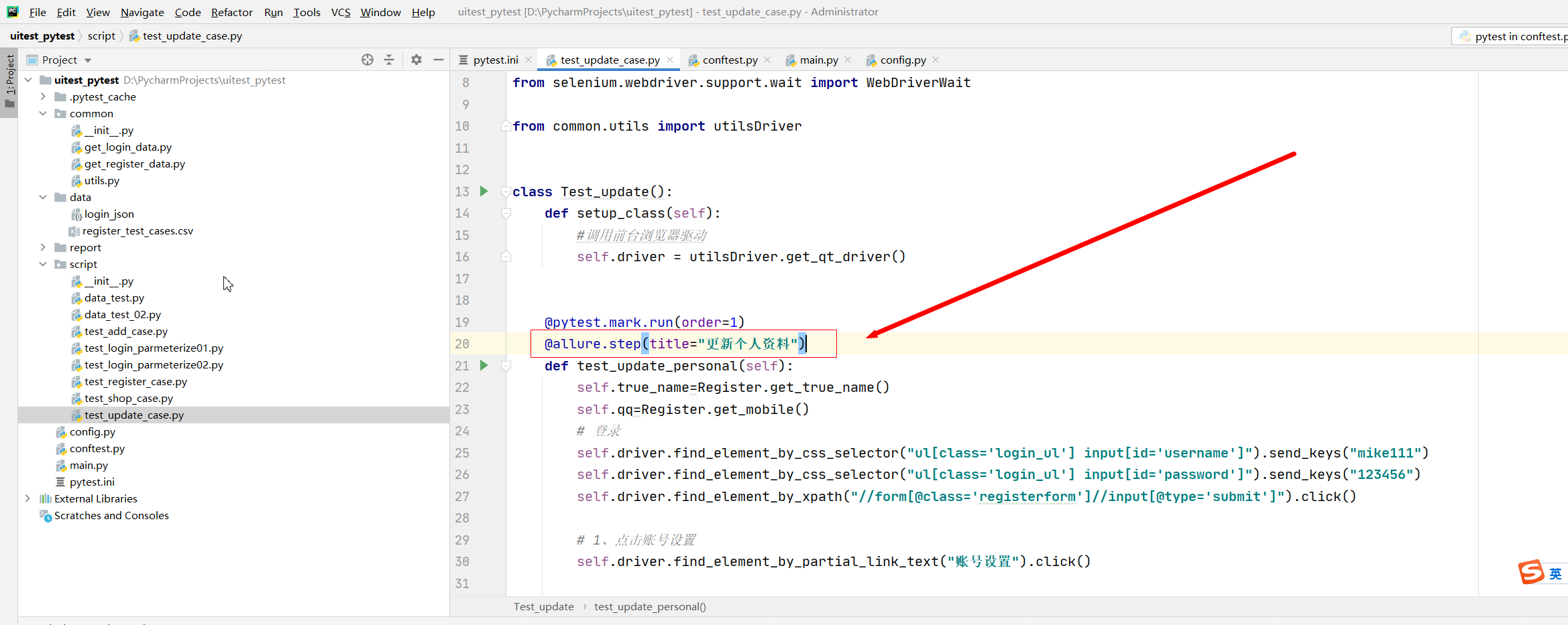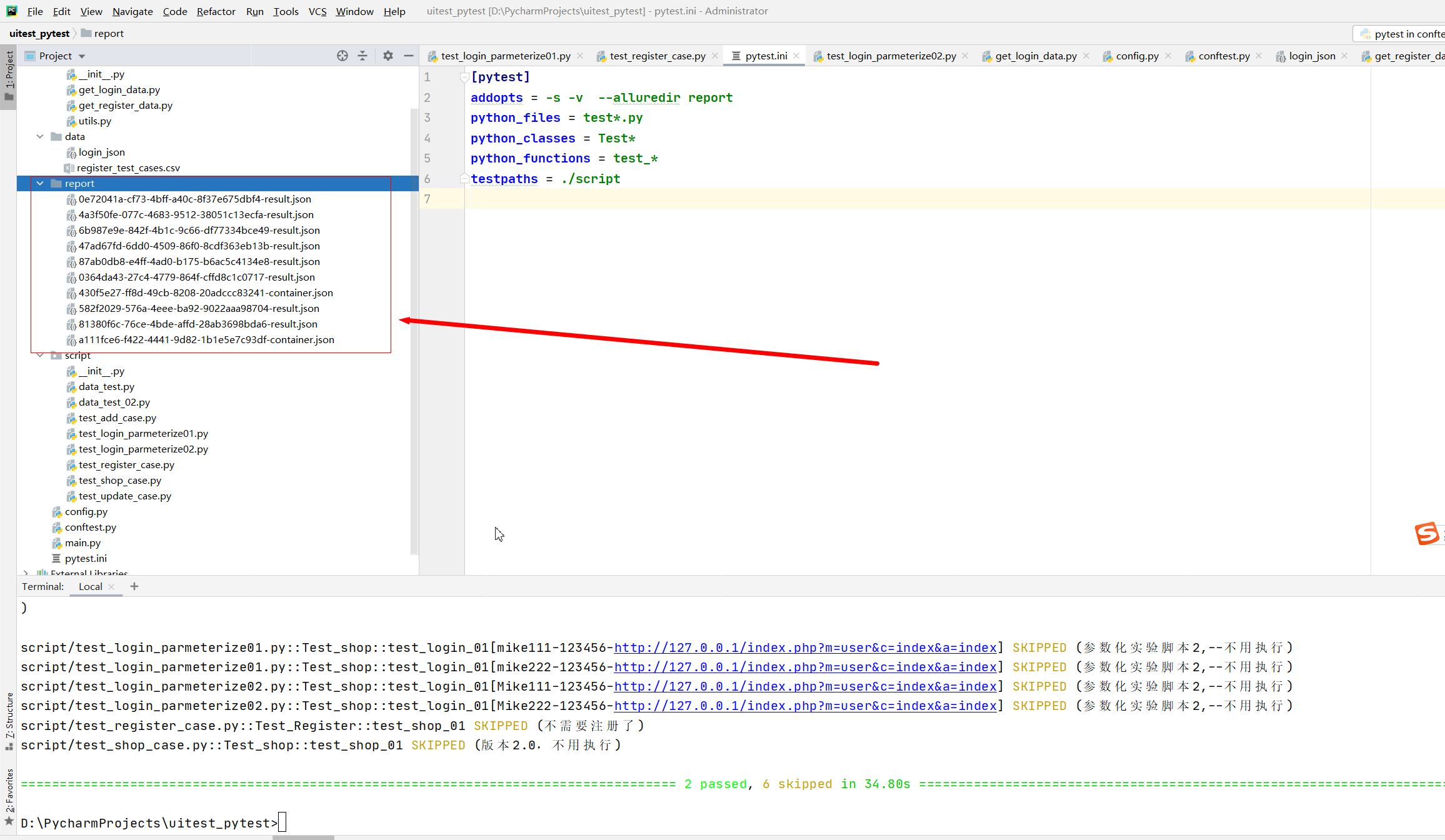 - 要在pytest.ini 配置文件中的addopts项中,增加一项: