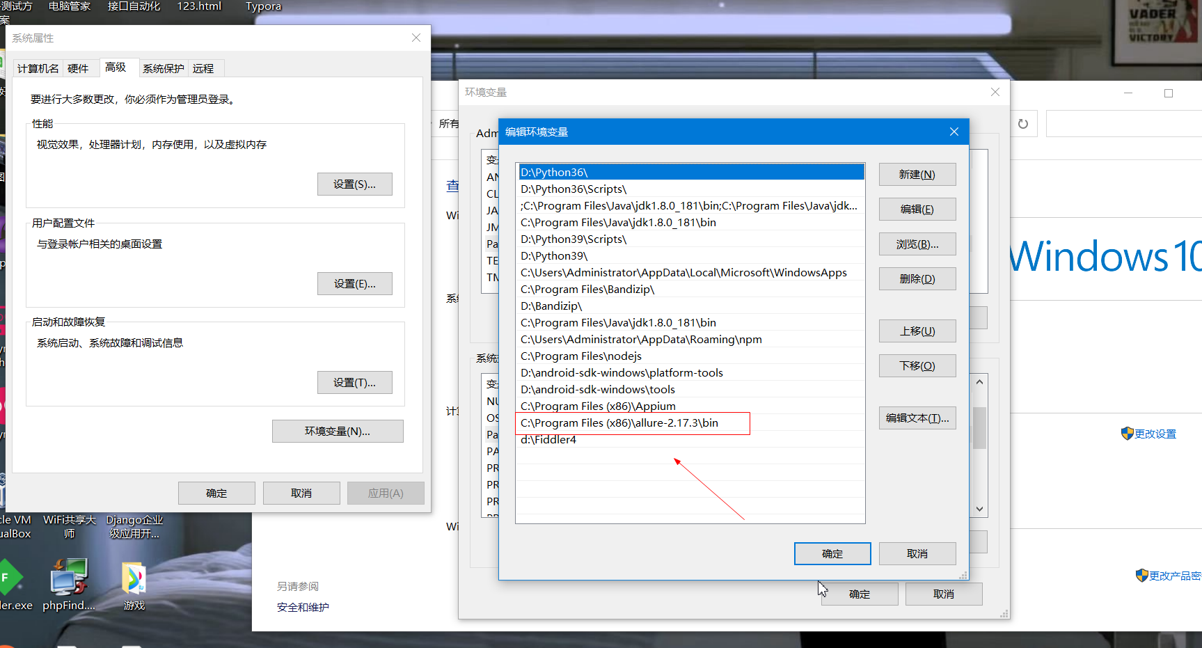 右键我的电脑 - 属性 - 高级设置 - 环境变量 - 找到系统环境变量的path项 - 增加 allure到bin 目录