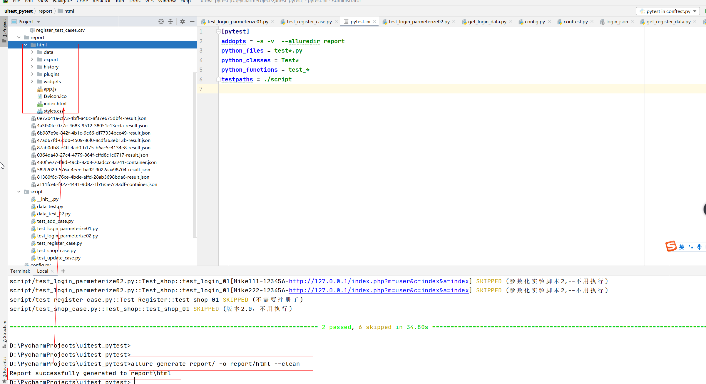 1、addopts = -s --alluredir report 中的 --alluredir report 是什么意思?