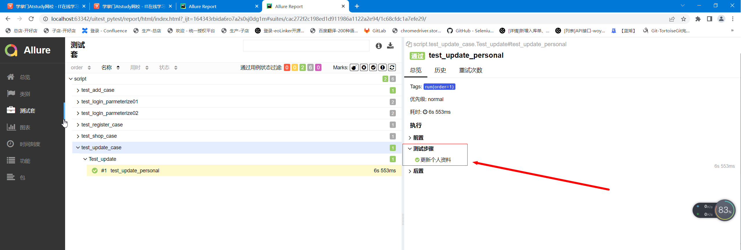 例如:在操作层中的方法上加上 @allure.step(title="测试步骤001") 装饰器