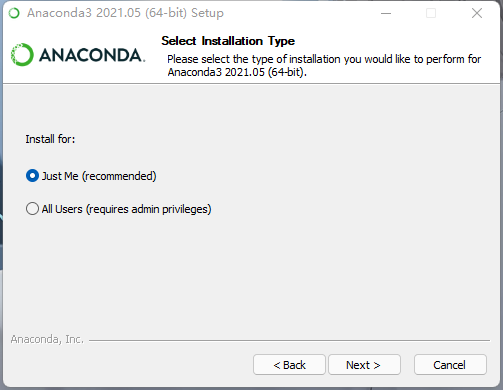 一般来说,大家的电脑只有一个账户,默认选择Just me,如果你的电脑有多个账户,那就选择All Users