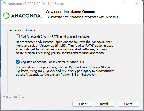 不需要勾线第一个,网上有些教程中建议勾选,但这样容易出现污染环境变量等各种小问题,为了保险起见,还是不勾选这个,后续进行人工设置。