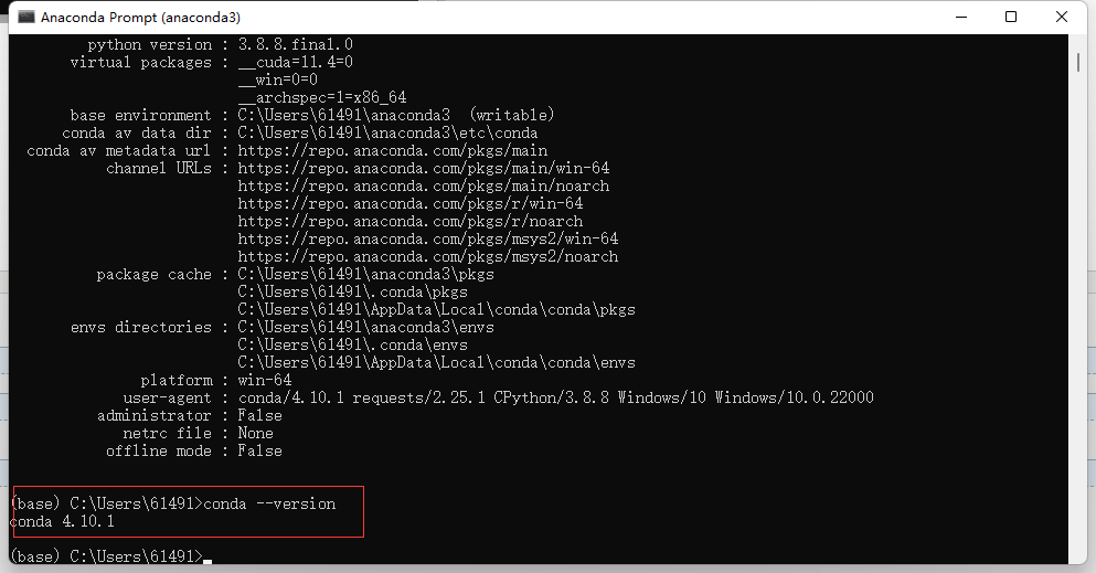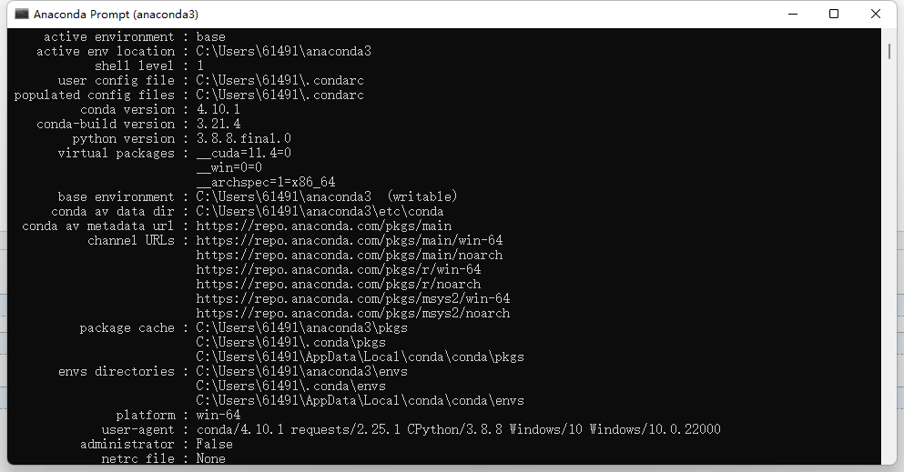 如果提示conda不是内部或外部命令,那就意味着,anaconda没有配置好环境变量,回头检查一下哪里出了问题