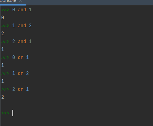 # or运算符,只有所有值为0结果才为0,否则结果为第一个非0数字