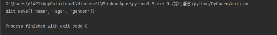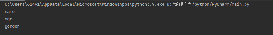 print(dict1.keys()) # dict_keys(['name', 'age', 'gender'])