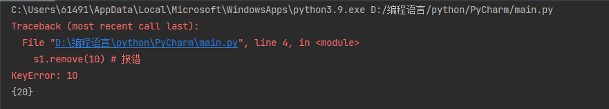 •remove(),删除集合中的指定数据,如果数据不存在则报错。