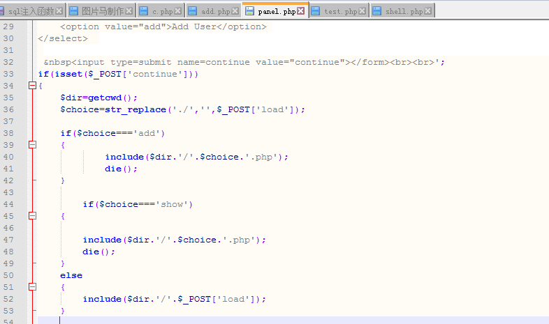 审计panel.php文件,发现存在文件包含漏洞。load参数是可控,且load参数被include()。