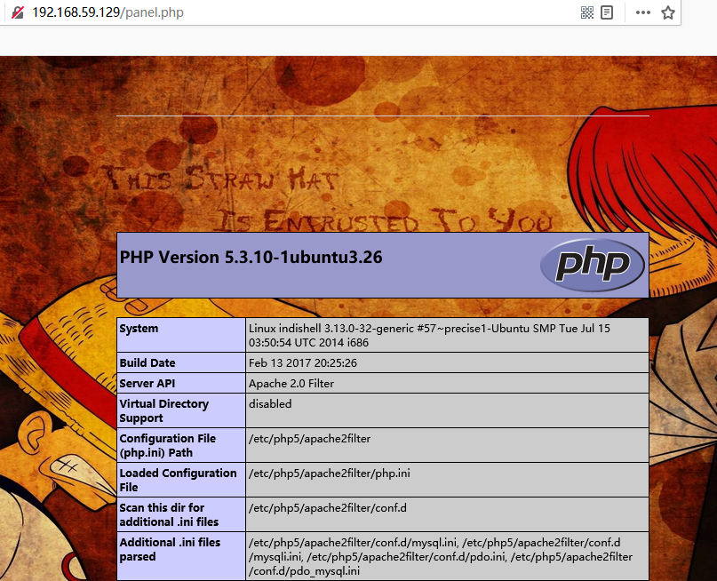 探测到靶机开放http和ssh 端口,web服务器是 apache,系统是ubuntu,使用php 脚本