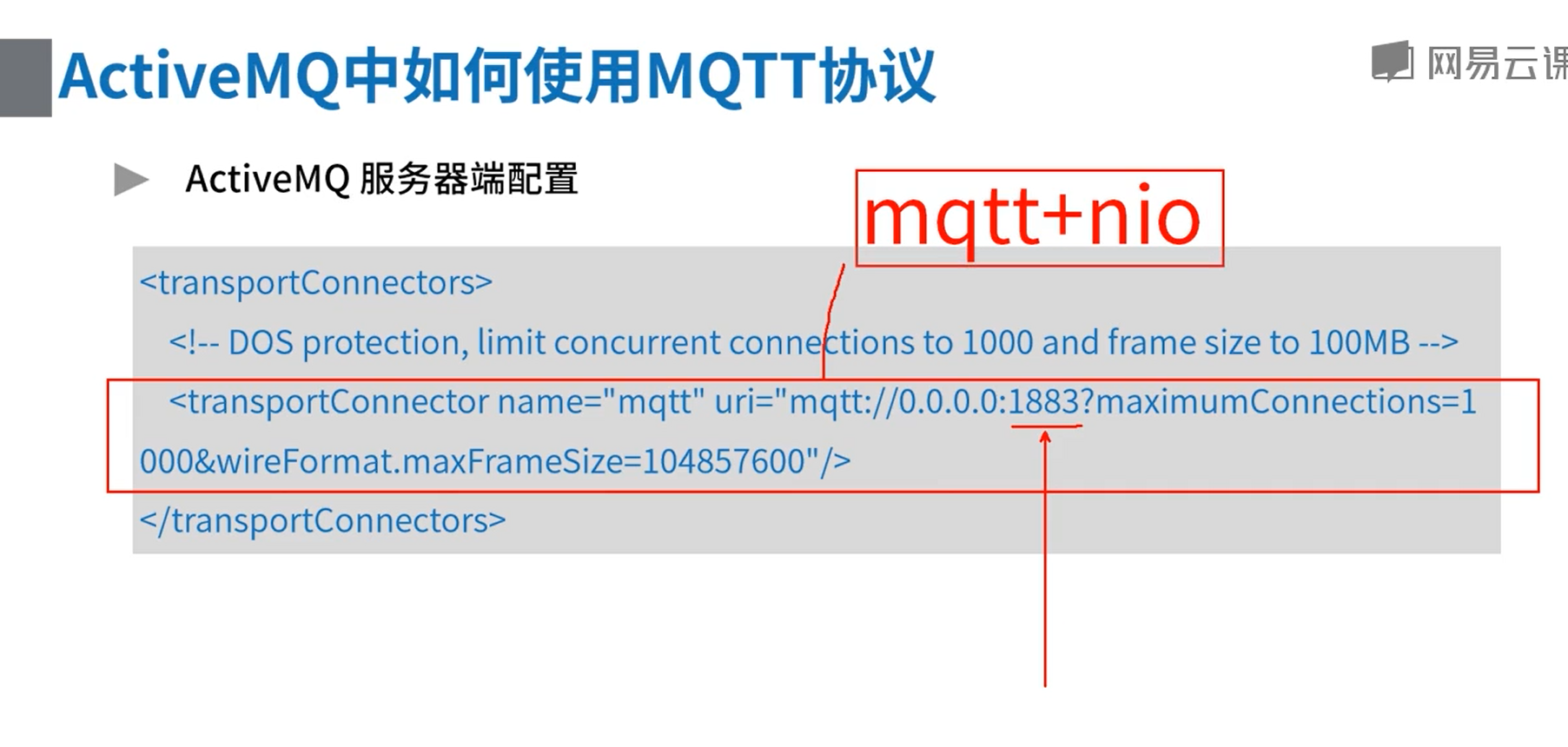 - <transportConnector name="openwire" uri="tcp://0.0.0.0:61616?trace=true&maximumConnections=1000&wireFormat.maxFrameSize=104857600" discoveryUri="multicast://default"/>