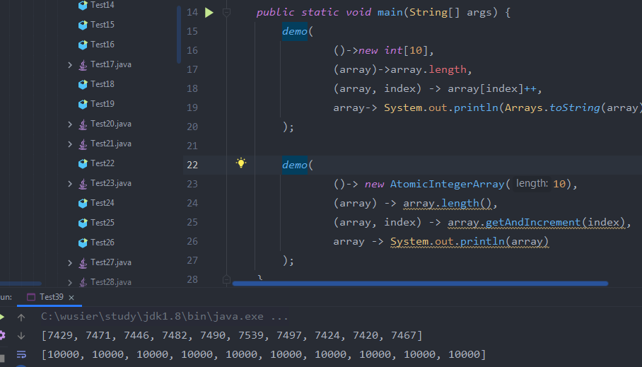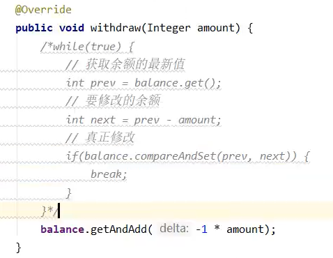 - 使用自定义的 AtomicData 实现之前线程安全的原子整数 ,并用之前的取款实例来进行验证