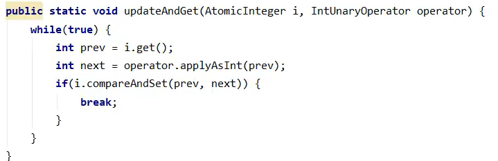 其中的关键是 compareAndSet,它的简称就是 CAS (也有 Compare And Swap 的说法),它必须是原子操作。