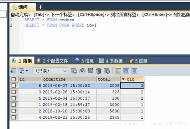 对应的sql语句:select * from orders o,user u where o.uid=u.id;