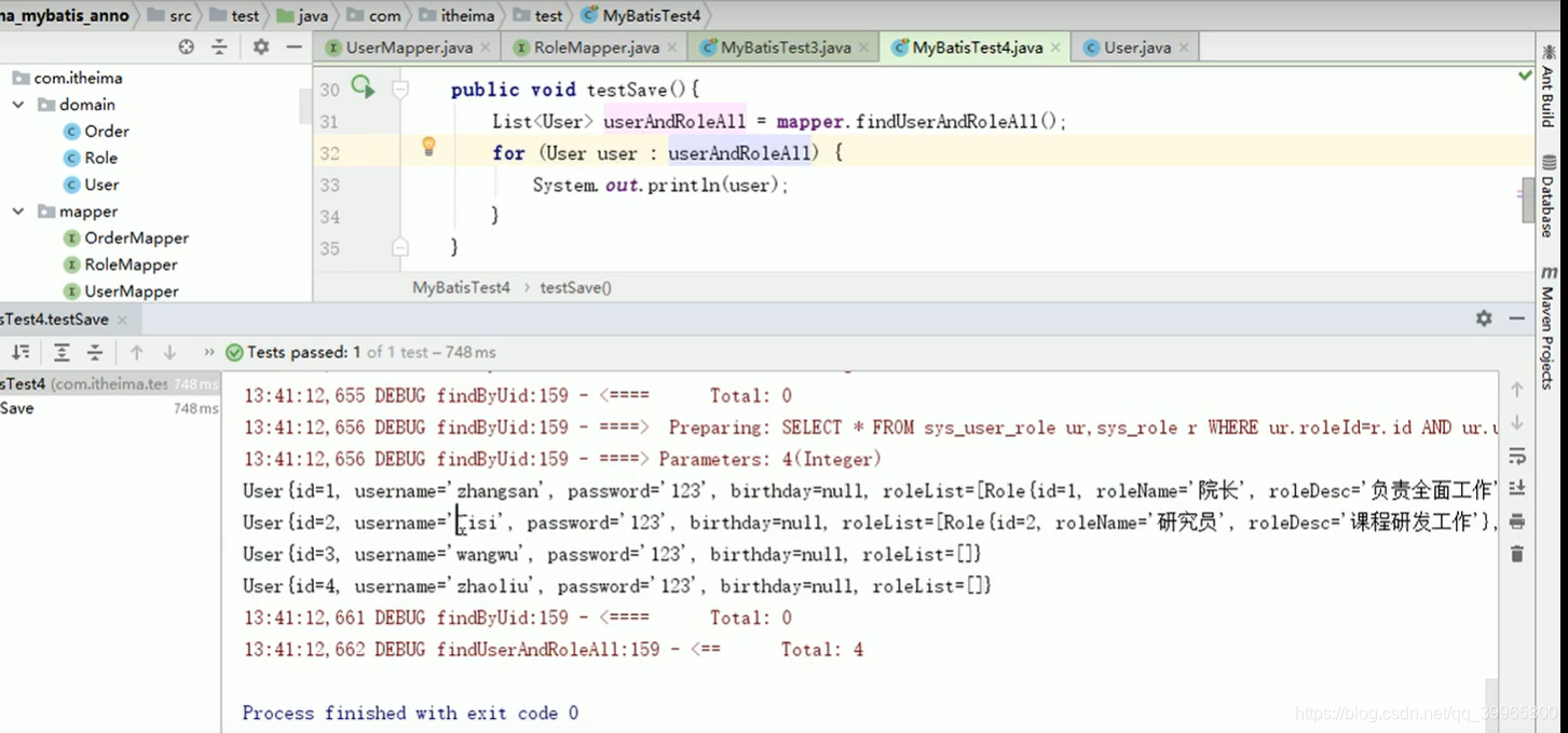 many = @Many(select = "com.itheima.mapper.RoleMapper.findByUid")