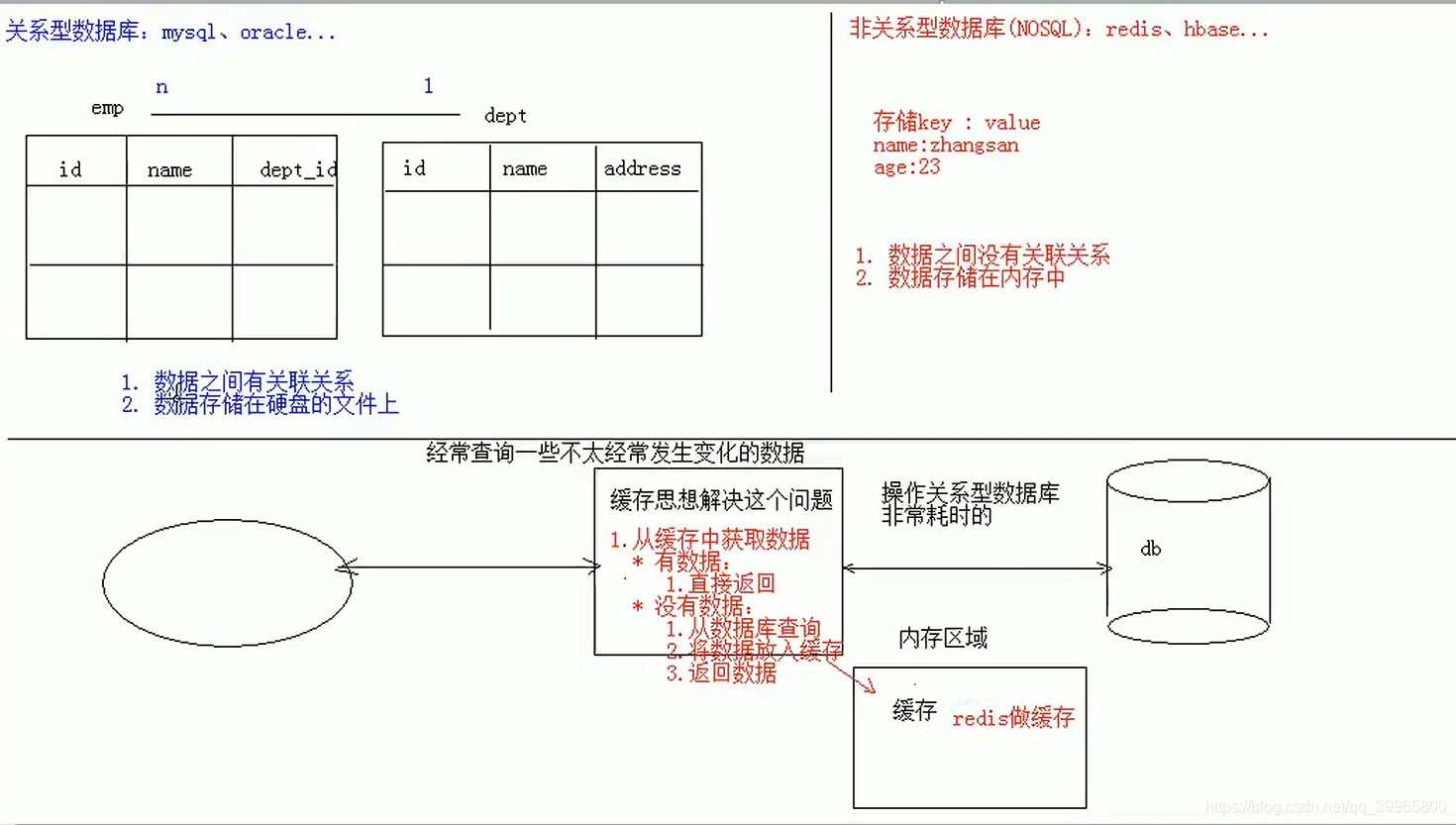 2)查询速度:nosql数据库将数据存储于缓存之中,关系型数据库将数据存储在硬盘中,自然查询速度远不及nosql数据库。