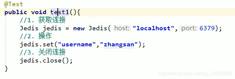 Jedis jedis = new Jedis();//如果使用空参构造,默认值 "localhost",6379端口