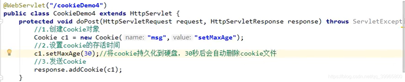1. 正数:将Cookie数据写到硬盘的文件中。持久化存储。并指定cookie存活时间,时间到后,cookie文件自动失效