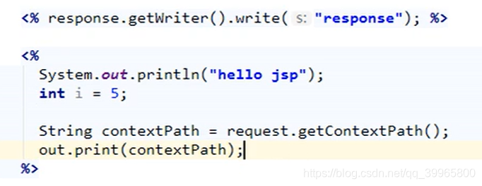 * out:字符输出流对象。可以将数据输出到页面上。和response.getWriter()类似
