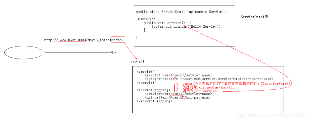 4. tomcat会将字节码文件加载进内存,并且创建其对象