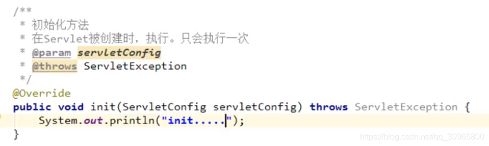 * Servlet被销毁时执行。服务器关闭时,Servlet被销毁