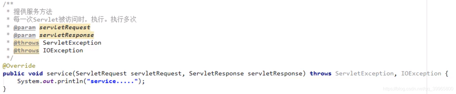 * 每次访问Servlet时,Service方法都会被调用一次。