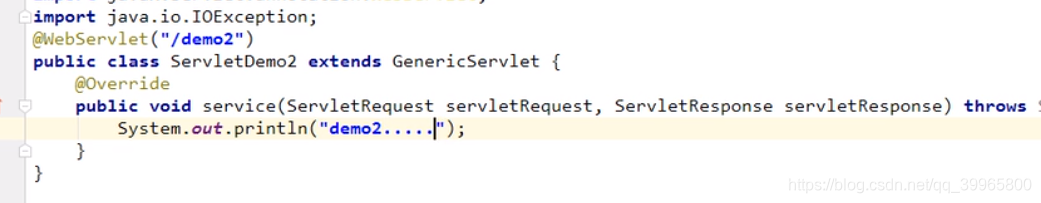 GenericServlet:将Servlet接口中其他的方法做了默认空实现,只将service()方法作为抽象