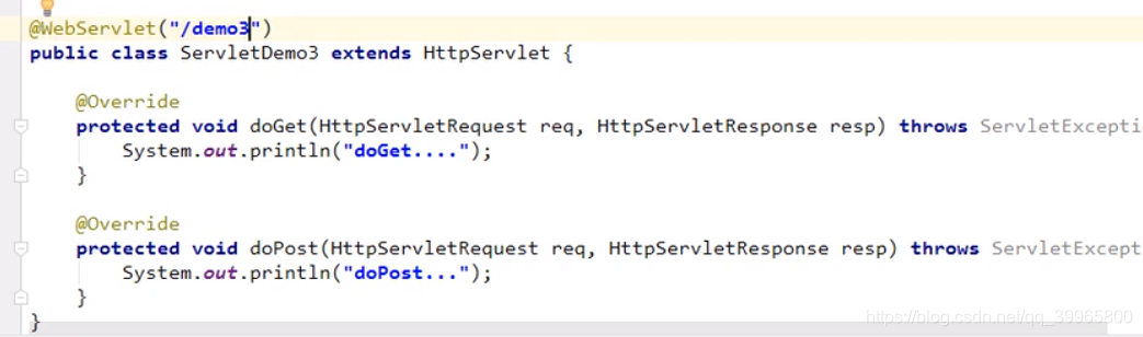 1. 一个Servlet可以定义多个访问路径 : @WebServlet({"/d4","/dd4","/ddd4"})