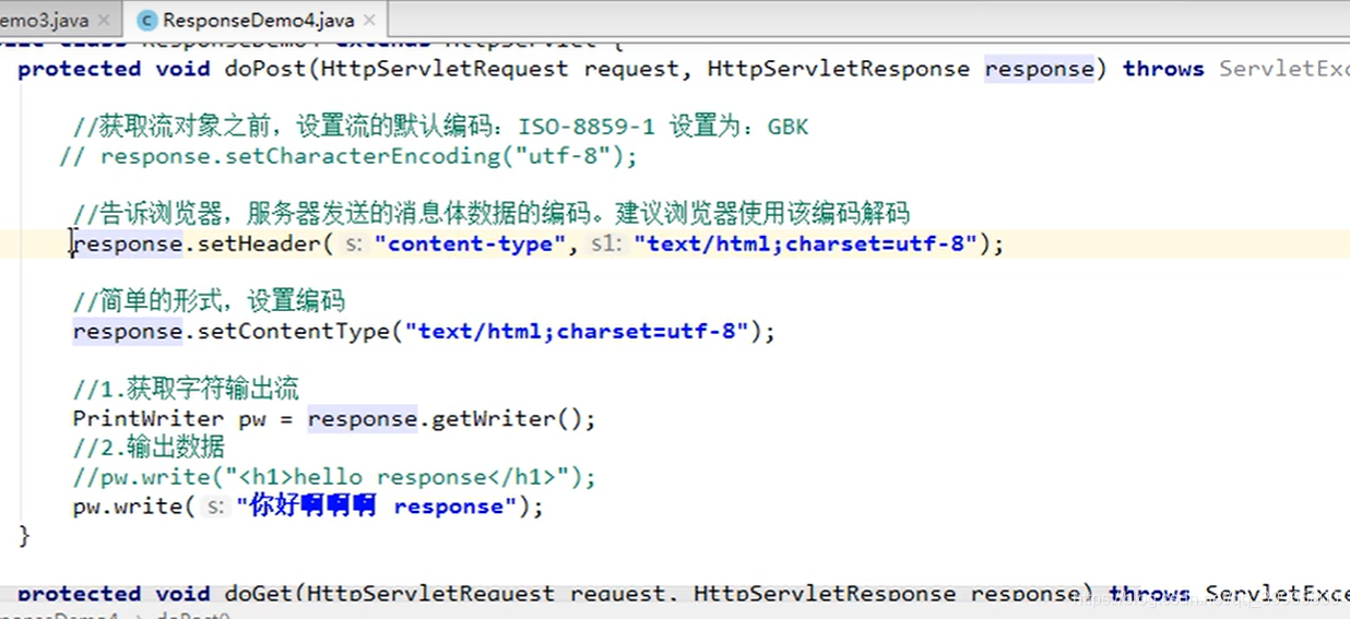 1. PrintWriter pw = response.getWriter();获取的流的默认编码是ISO-8859-1