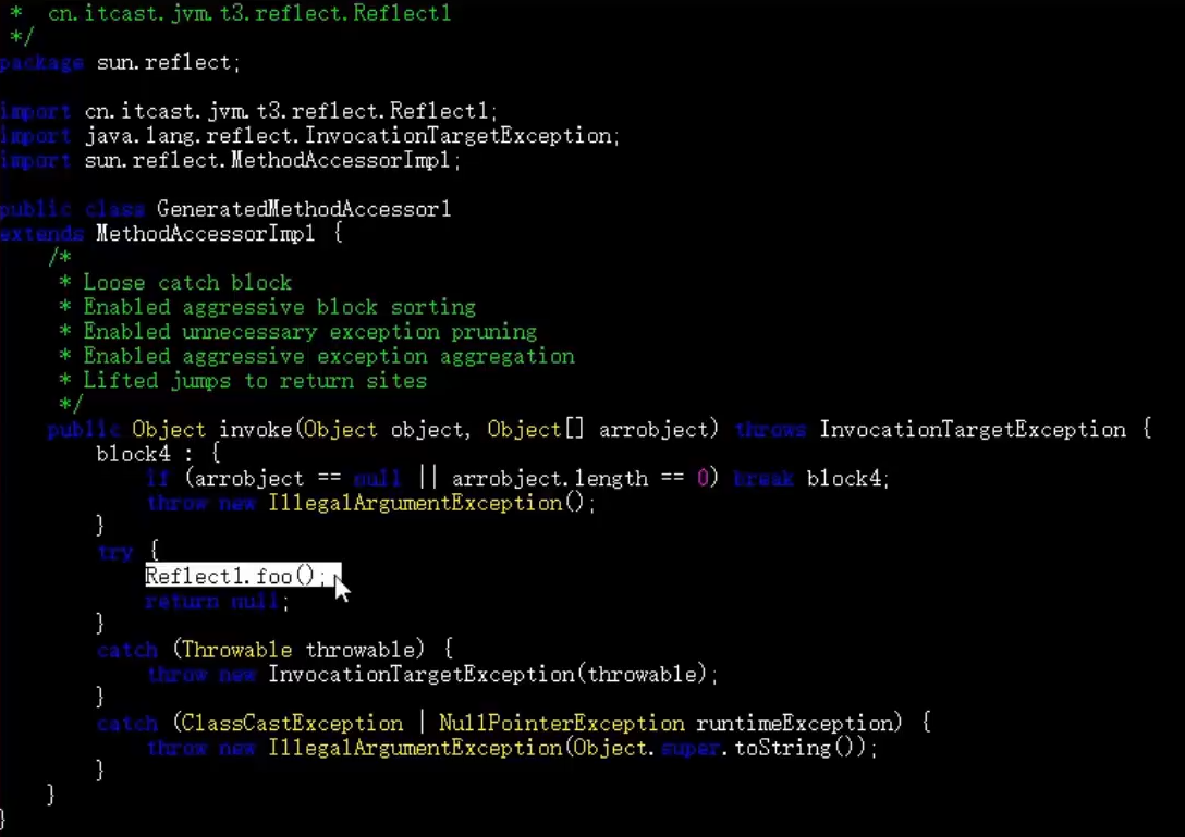 - 这时会从反射调用变为正常调用,即直接调用 Reflect1.foo()