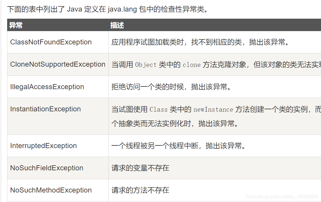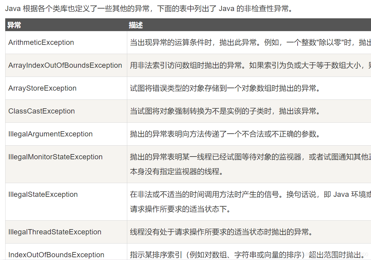 继承RuntimeException:那么自定义的异常类就是一个运行期异常,无需处理,交给虚拟机处理(中断处理)