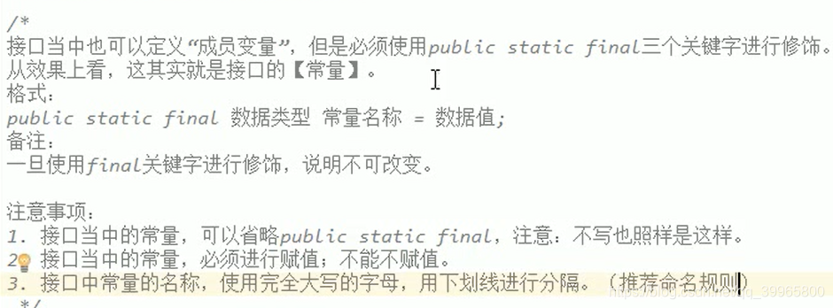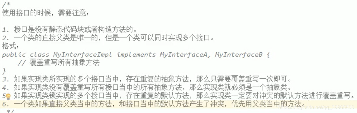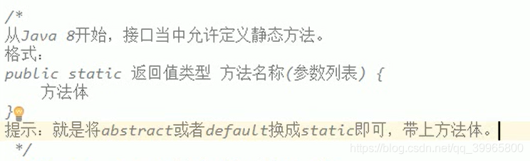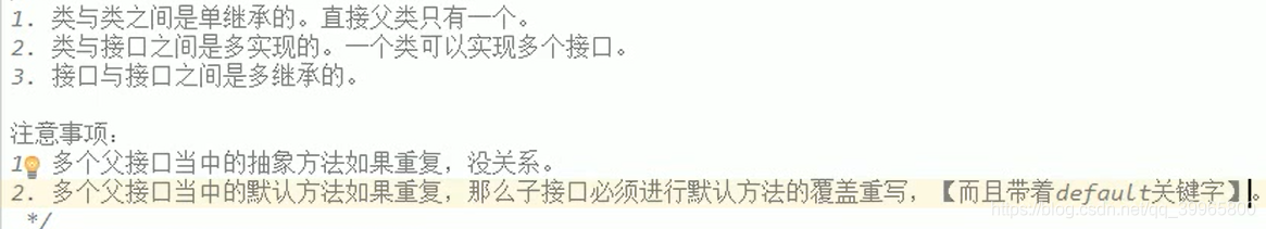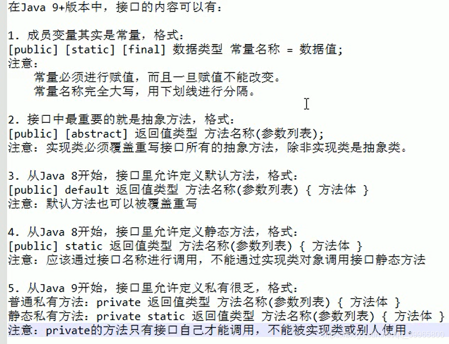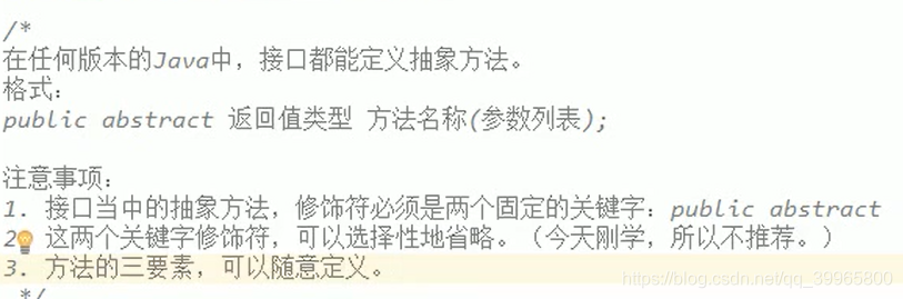1. 接口当中的抽象方法,修饰符必须是两个固定的关键字:public abstract