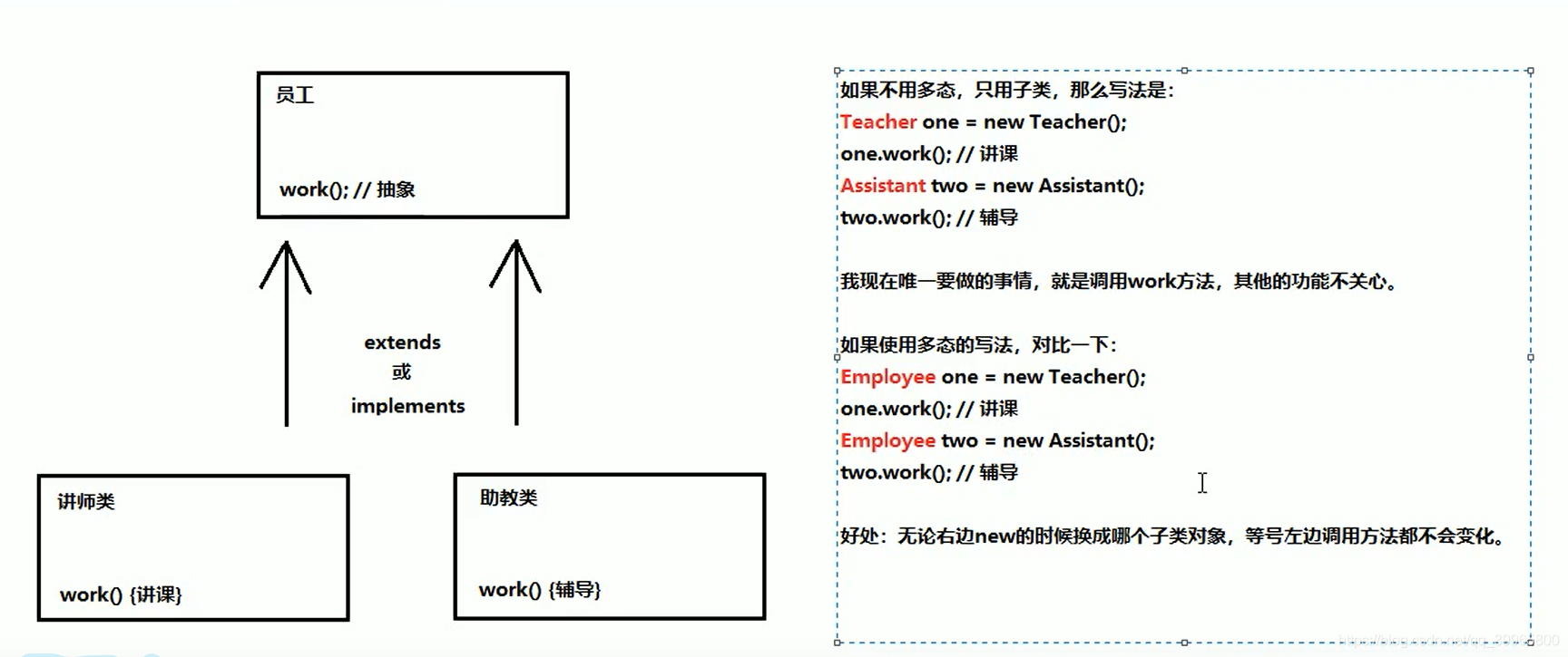 a.methodAbs(); // 调用抽象方法,实际运行的是右侧实现类。