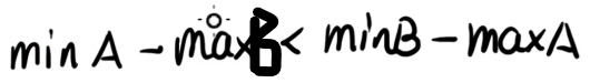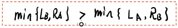 有一个很恼人的点:当 \(\min\{L_B,R_A\} = \min\{L_A,R_B\}\) 时,\(A\) 在前面或者 \(B\) 在前面的结果可能是不一样的!