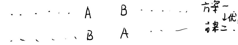 因为方案一优于方案二,所以 \(A+B> B+A\)。于是这道题就做完了。