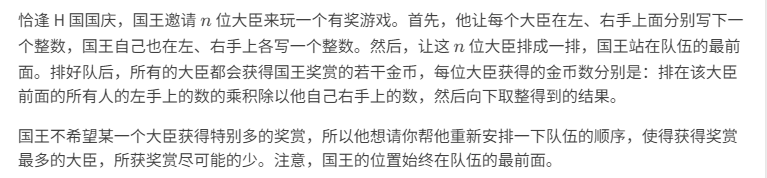 题面和国王游戏是差不多的,但是它的得分数变成了这个样子: