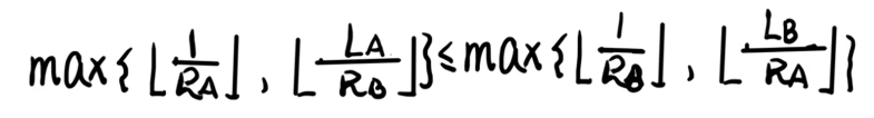 然后又发现因为 \(R_a,R_b\) 都是正整数,所以 \(\lfloor \frac{1}{R_a} \rfloor = \lfloor \frac{1}{R_b} \rfloor = 0\),显然这样进行 \(\max\) 是毫无意义的。式子变为: