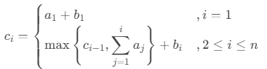 c[i] = max(c[i - 1], sum) + a[i].b;